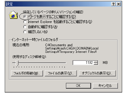 設定画面が表示されたら、ページを表示するごとに確認する(E)にチェックを入れて(チェックボックスを左クリック)下さい。